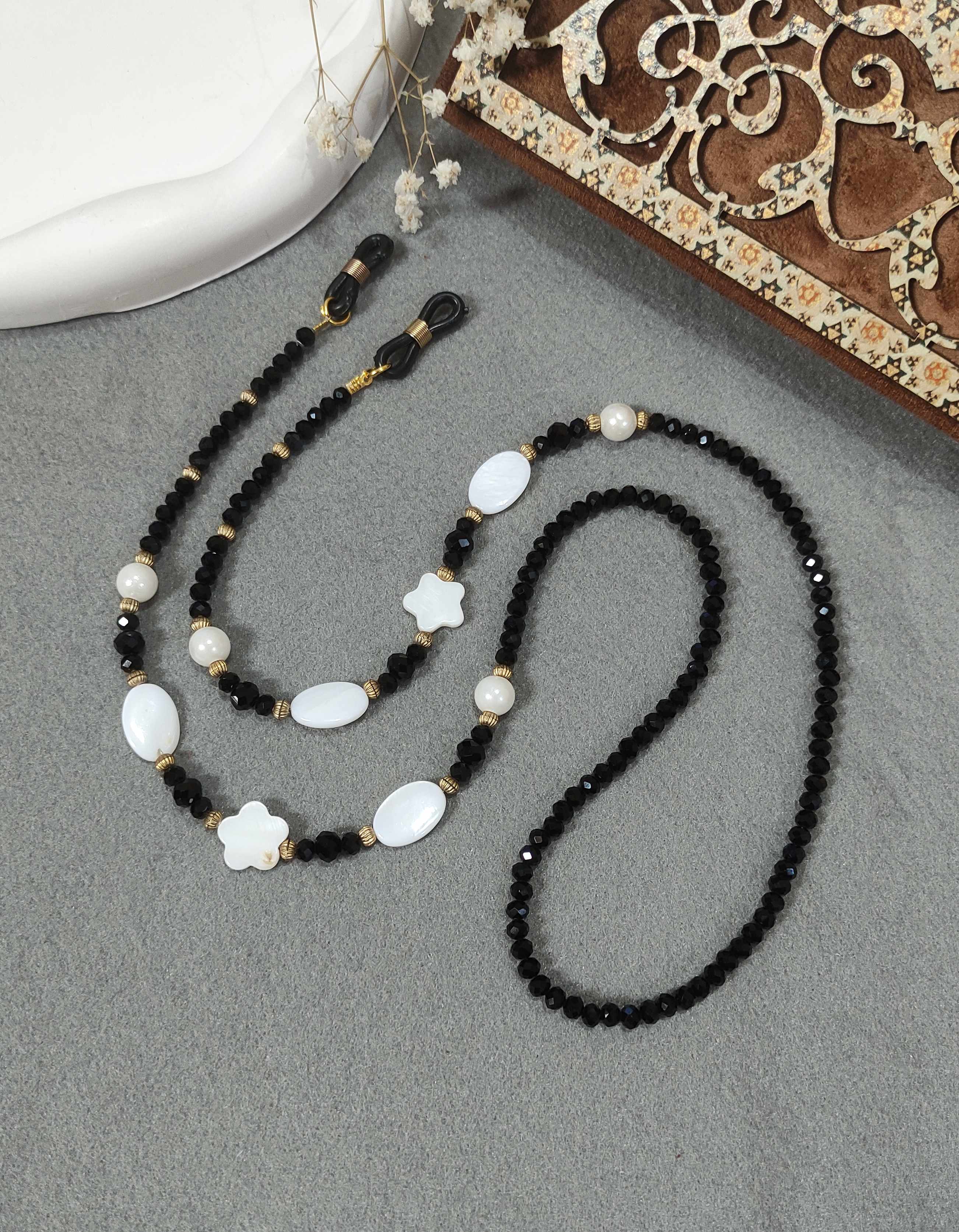 بندعینک کریستالی طوسی و سورمه ای با صدف طبیعی