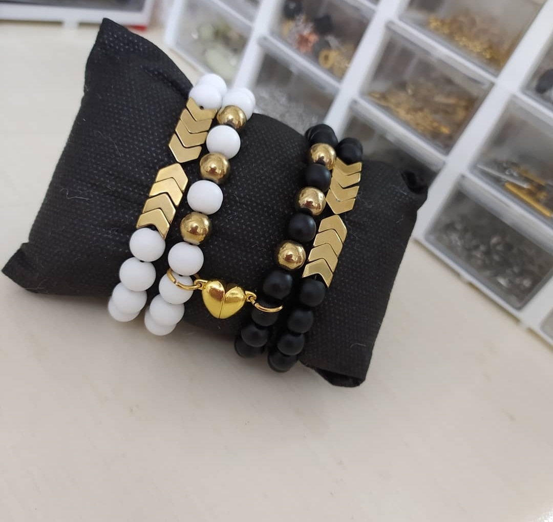دستبند اونیکس و حدید 4 عددی مدل لاو
