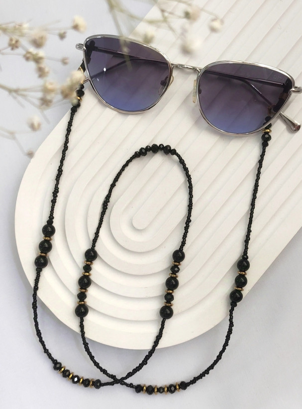 بندعینک منجوقی مشکی زنانه و دخترانه