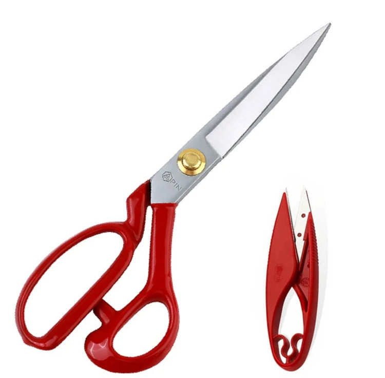 قیچی پین دسته قرمز سایز 9 و 10 همراه با نخ چین