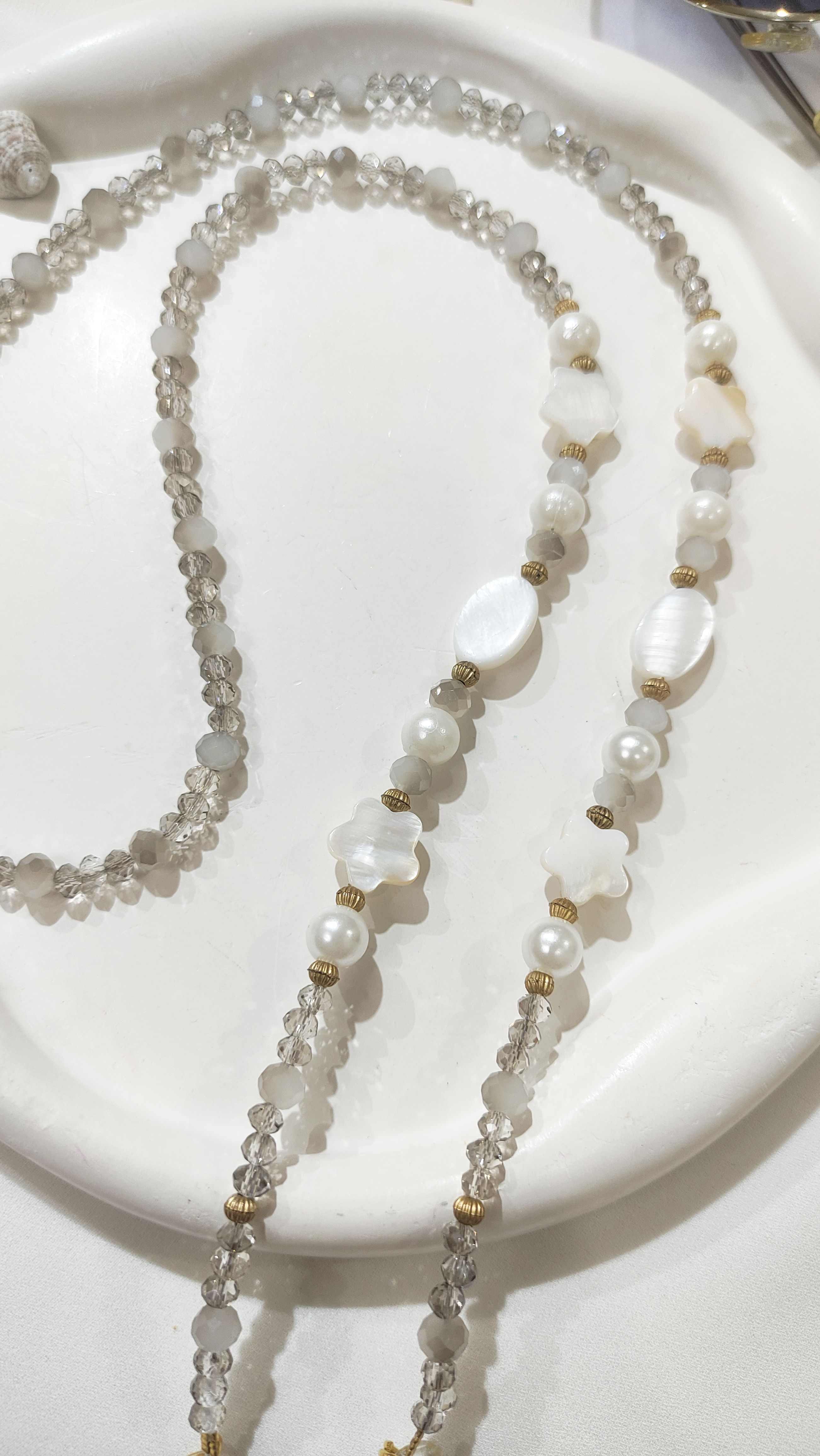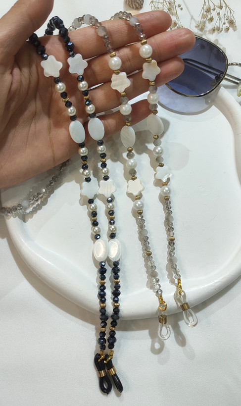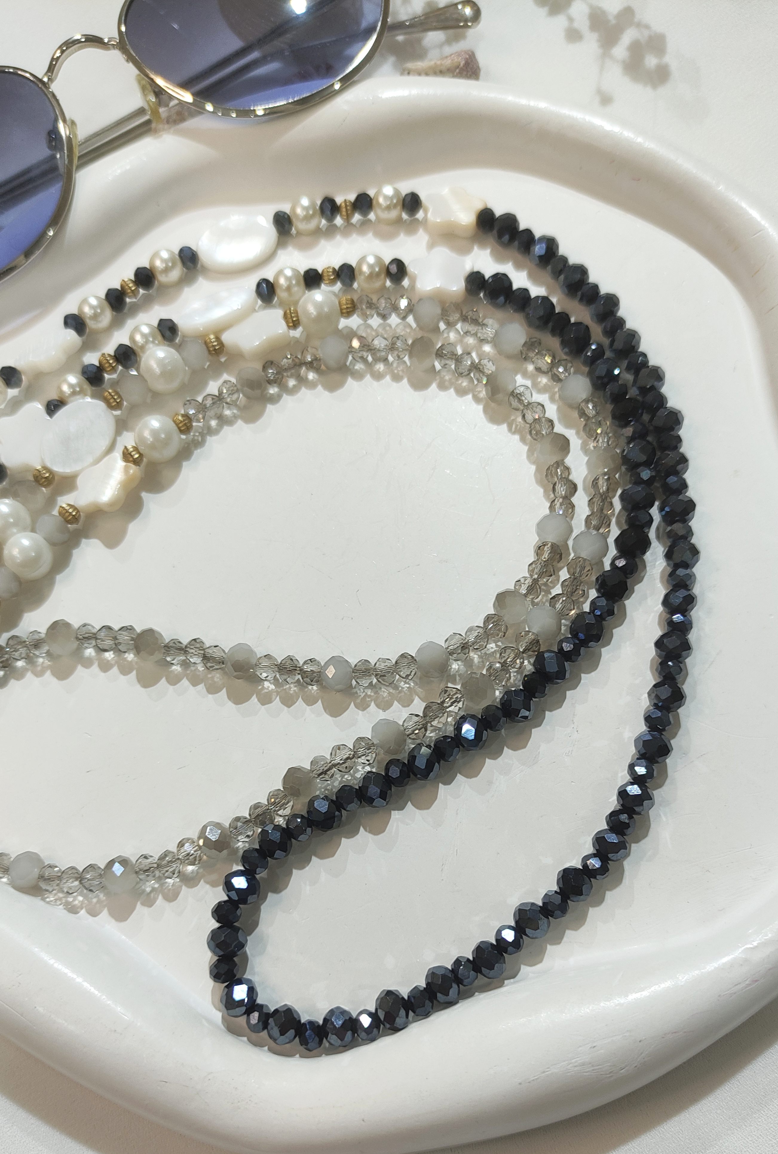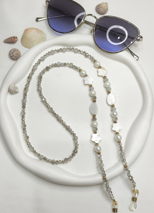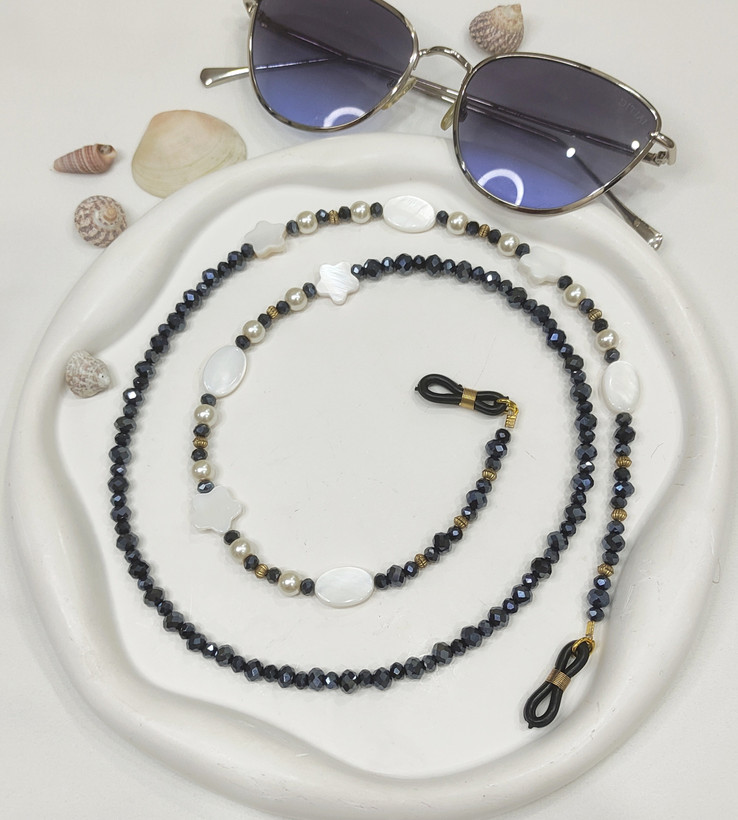 بندعینک کریستالی طوسی و سورمه ای با صدف طبیعی