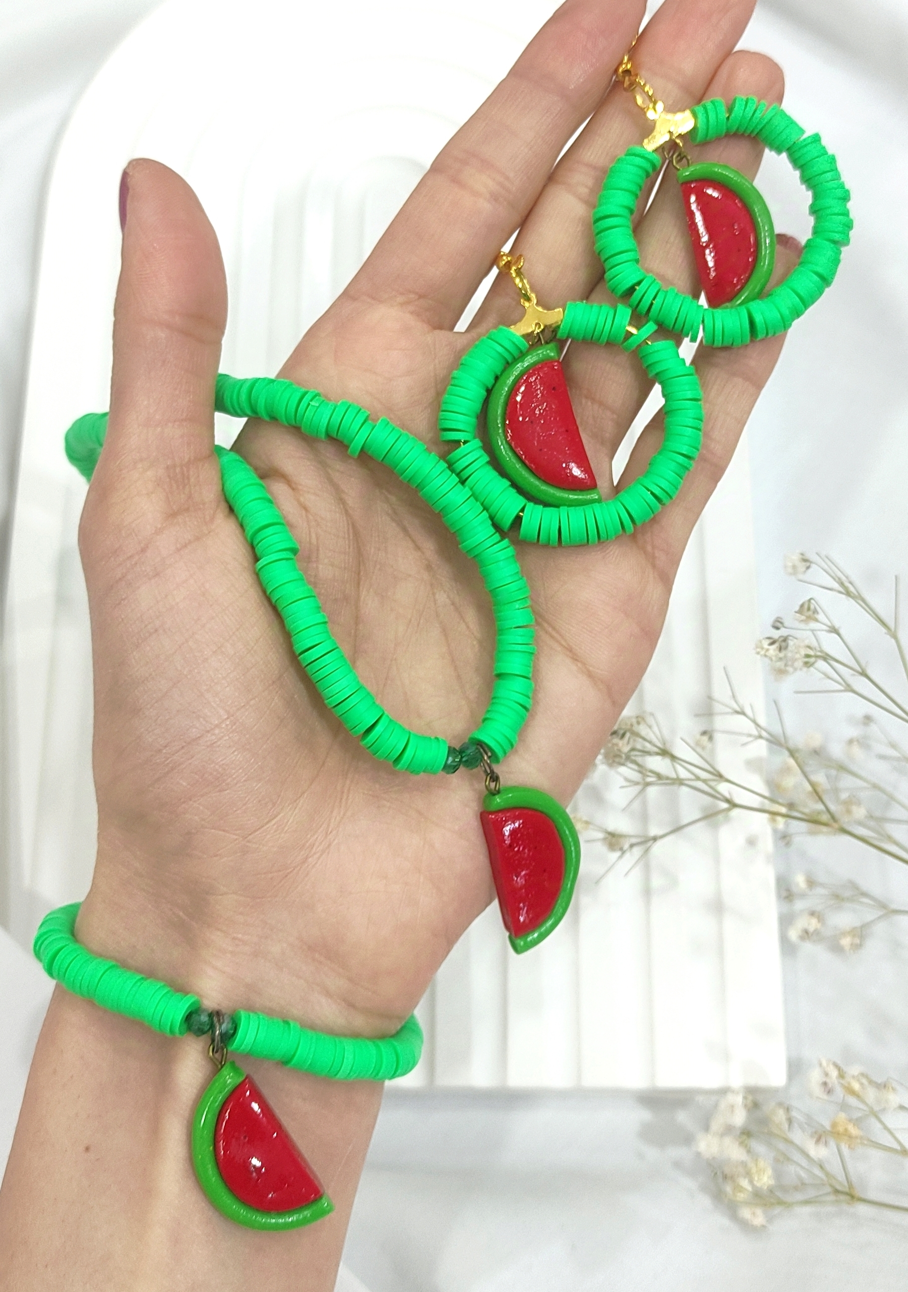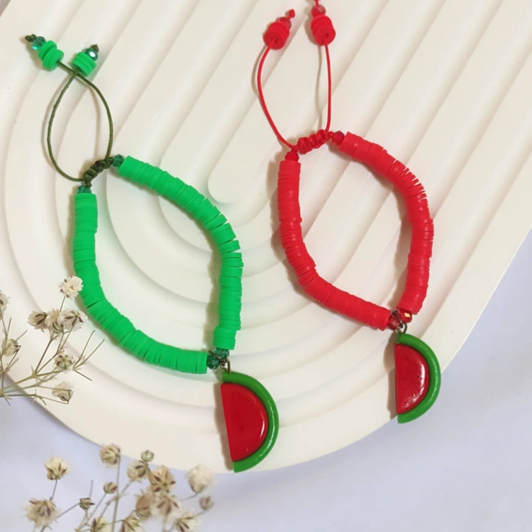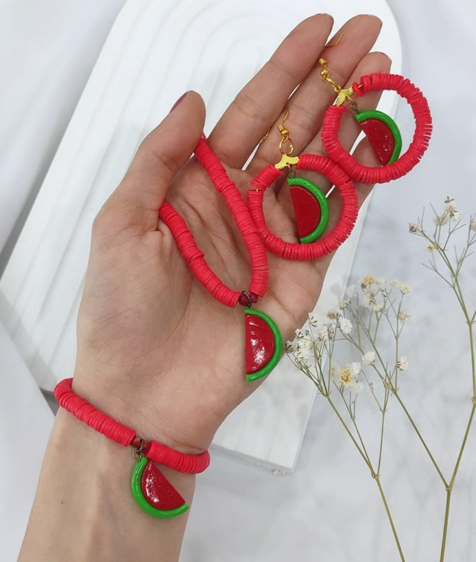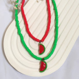 ست دستبند و گردنبند و گوشواره یلدایی مدل هندوانه