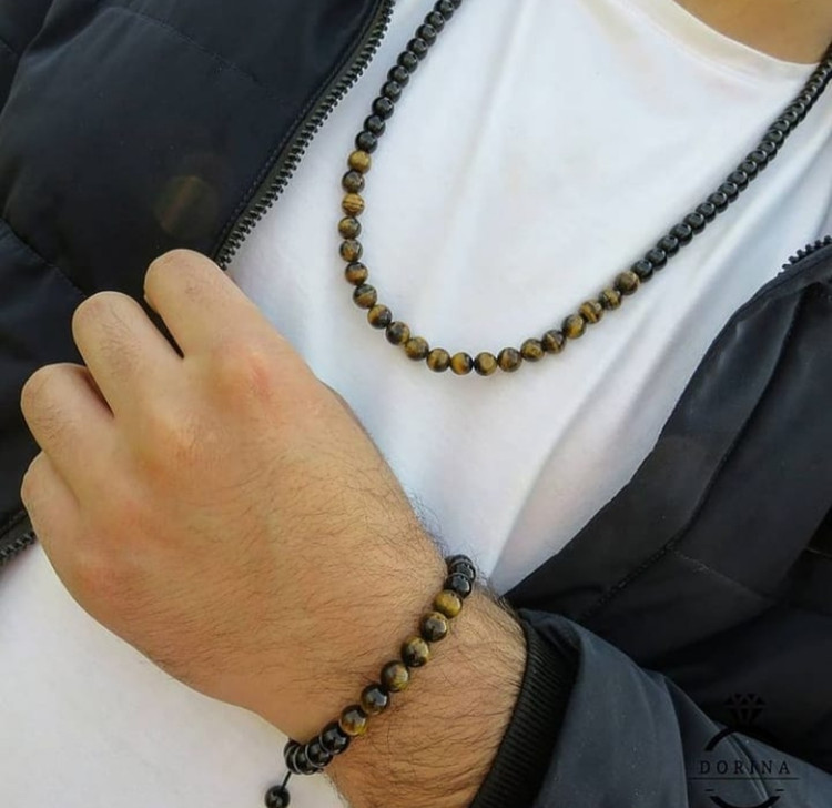 ست گردنبند و دستبند مردانه سنگ چشم ببر و انیکس