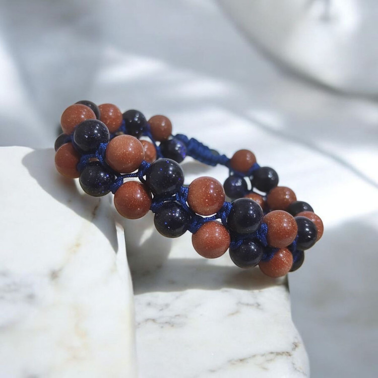 دستبند دو ردیفه دلربا ترکیبی قهوه ای و سورمه ای