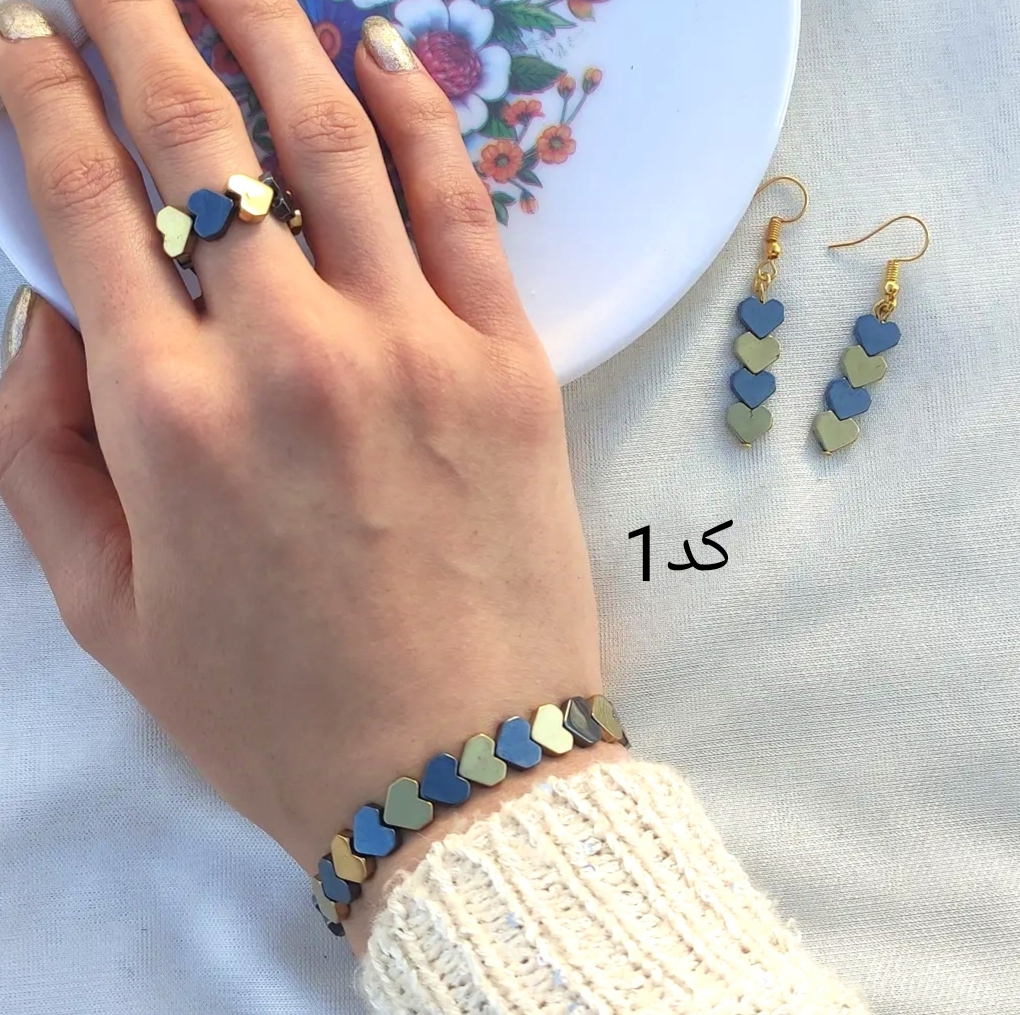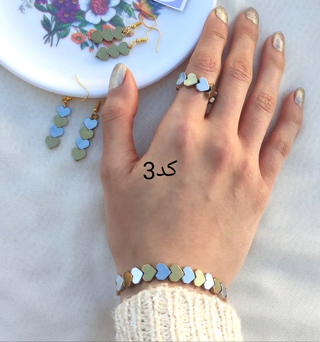 ست دستبند و انگشتر ‌و گوشواره حدید مدل قلب