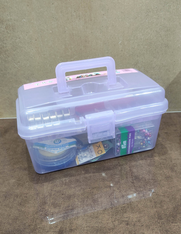 جعبه نظم دهنده لوازم خیاطی مثل بشکاف،نخ چین، رولت، سوزن، ماسوره، قزن و دکمه، متر، کش، سنجاق، نخ، گیره الگو و سایر لوازم کوچک