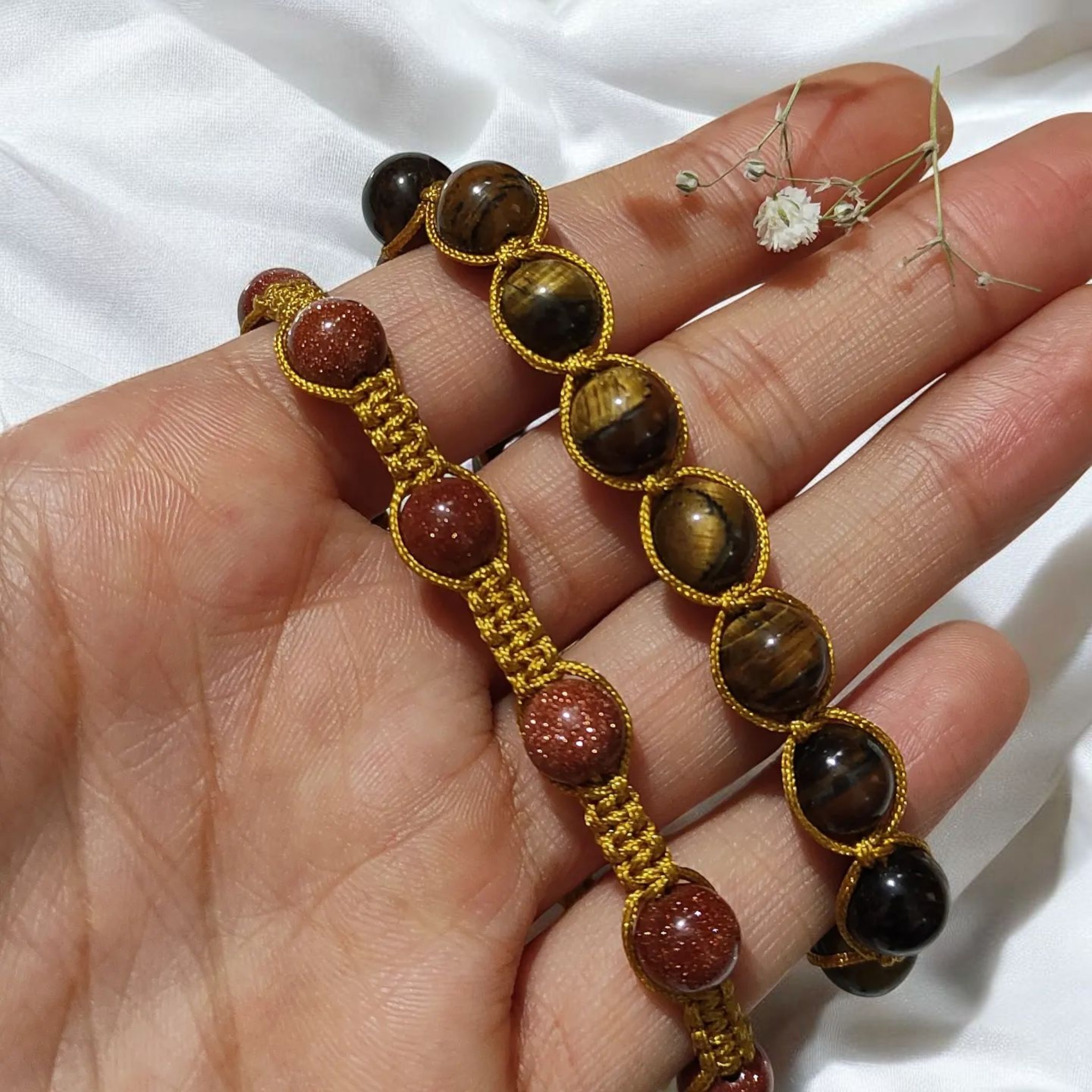 دستبند بافت مربعی با سنگ دلربا و چشم ببر
